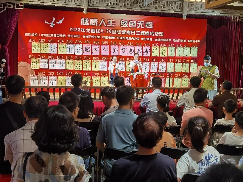 為進一步加強禁毒宣傳和毒品預防教育工作,廣泛宣傳普及禁毒知識,增強群眾防毒、拒毒意識和能力,號召群眾積極抵制毒品,在第36個“6.26”國際禁毒日到來之際,6月24日,由龍湖區禁毒辦主辦、龍湖公安分局承辦、龍湖區普法辦等單位協辦,在汕頭萬象城六樓里巷區域開展以“健康人生綠色無毒”為主題的禁毒宣傳教育活動。