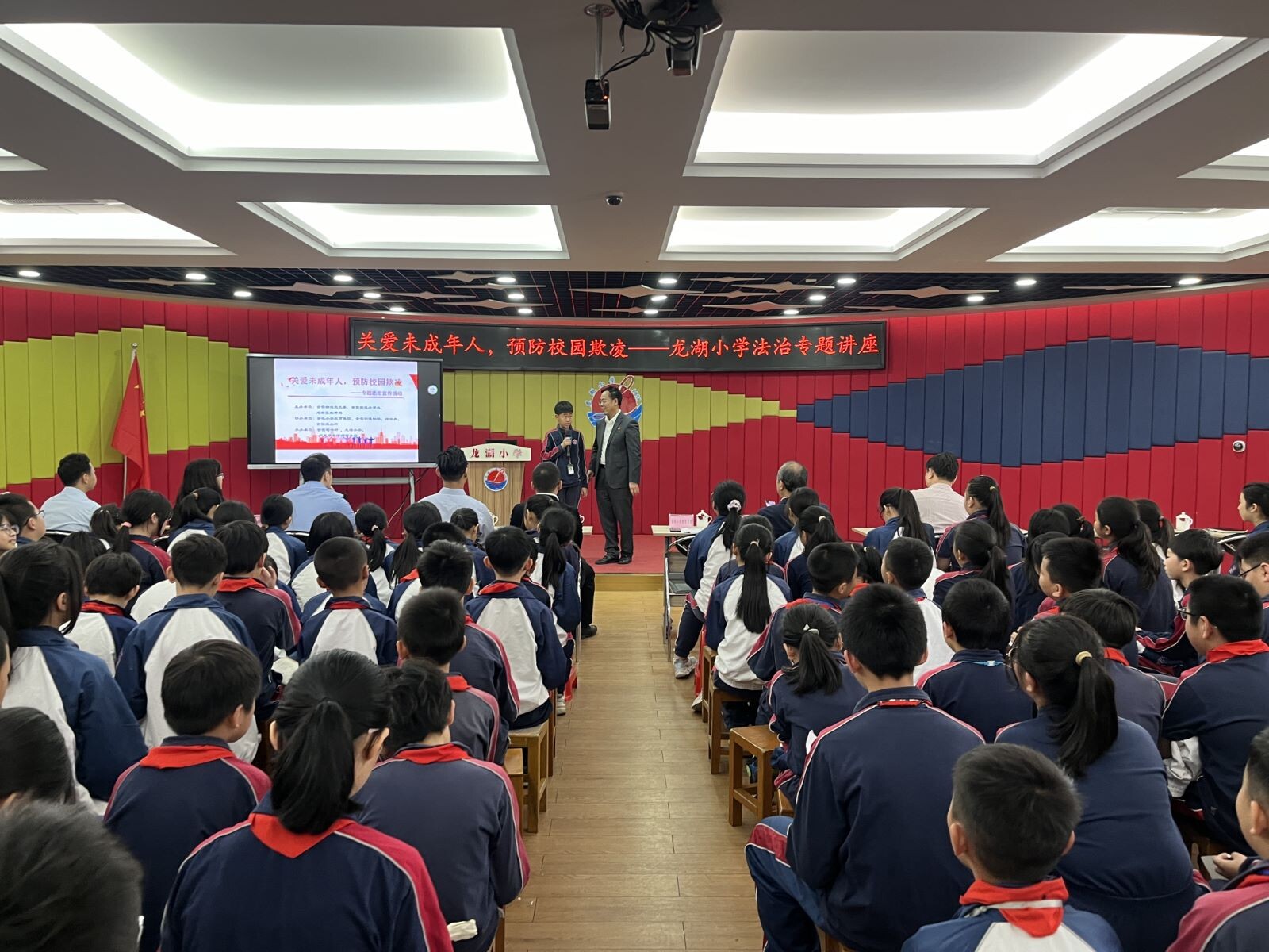 播一粒法治之種,育一方和諧之田。為了加強青少年學生法治教育,預防校園欺凌和青少年違法犯罪,促進法治校園建設,護航青少年學生健康成長。2024年3月28日上午,龍湖區司法局金霞司法所邀請廣東子墨律師事務所謝尚文律師,到龍湖小學開展“關愛未成年人,預防校園欺凌”專題法治講座。