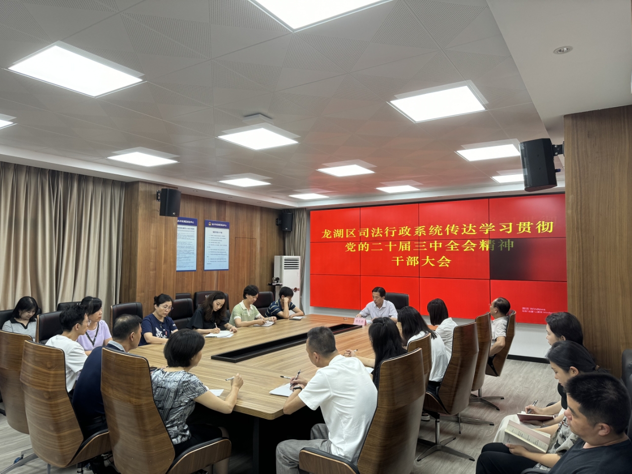 7月26日,龍湖區司法局召開黨組(擴大)會議及司法行政系統全體干部大會,專題傳達學習貫徹習近平總書記在黨的二十屆三中全會上的重要講話和全會精神,以及省市區干部大會精神,研究貫徹落實意見。