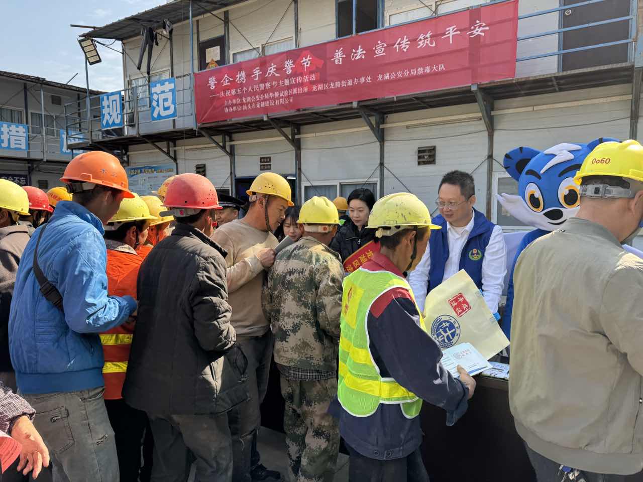 2025年春節(jié)將至,為弘揚(yáng)法治精神,充分發(fā)揮法治宣傳教育在維護(hù)社會(huì)和諧穩(wěn)定中的基礎(chǔ)作用。1月9日龍騰司法所以“110宣傳日”為契機(jī),積極參與龍騰街道辦事處聯(lián)合華僑試驗(yàn)區(qū)派出所、龍湖公安分局禁毒大隊(duì)在龍鐽建設(shè)有限公司工地舉辦“警企攜手慶警節(jié),普法宣傳筑平安”普法主題宣傳活動(dòng)。