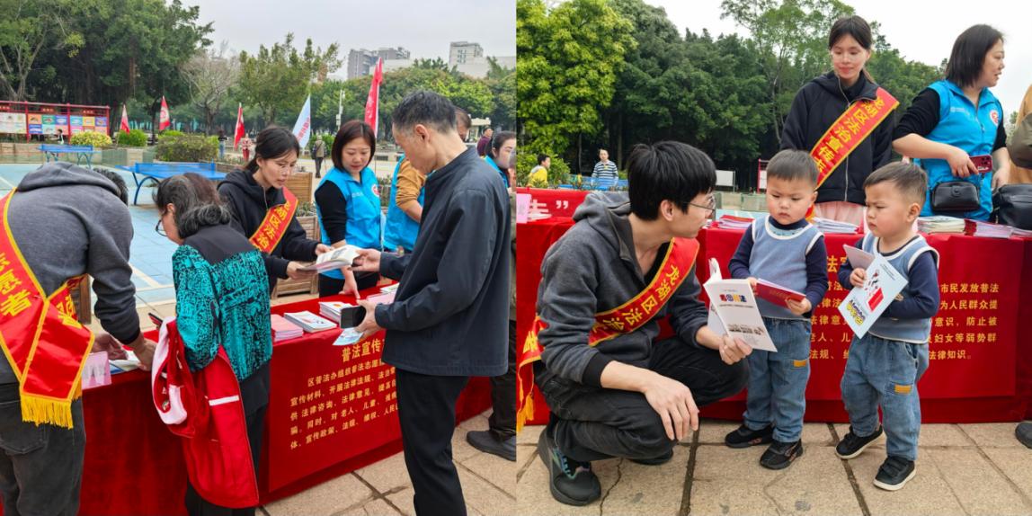 本次活動突出“專業+服務”特色,各參與單位緊密合作,充分利用自身優勢資源,為周邊群眾提供義診服務和應急救援、消防安全、禁毒反詐、法律服務等宣傳。龍湖區普法辦、龍湖區司法局組織青年普法志愿者,在活動現場為周邊群眾發放《中華人民共和國憲法》及民法典簡明讀本、“八五”普法宣傳和法律援助宣傳手冊、《圖釋未成年人保護法》等普法資料,并詳細講解相關法律法規知識。同時,依托龍湖司法資源優勢,在現場設置普法咨詢臺,就婚姻家庭、未成年人保護、養老反詐、法律援助、人民調解、網購維權、職場性別歧視、侵權損害、買賣糾紛等為群眾提供專業法律指導,獲得現場群眾一致好評。現場累計發放普法資料300余份,接待法律咨詢10余人次,實現普法宣傳與便民服務的有機結合。