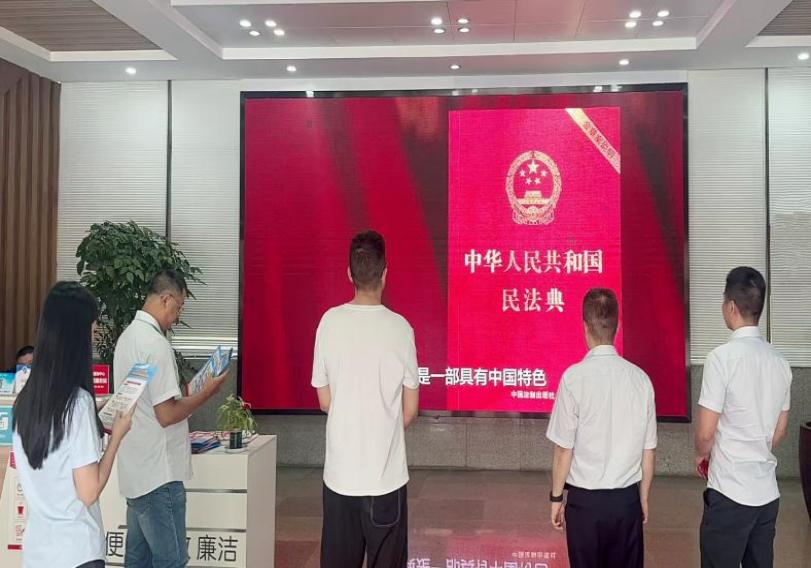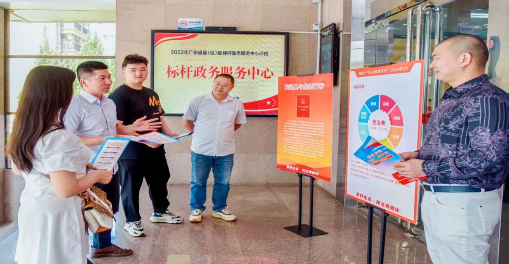 3.創新普法模式推進協同宣。區政務和數據局主動創新普法載體與形式,跳出傳統。一是在政務大廳的窗口崗位及電子顯示屏、電子觸摸屏等對外服務平臺上增設法治宣傳功能,借助公眾服務窗口常態進行法治宣傳。二是聯合開展宣傳活動,比如聯合汕頭市煙草專賣局共同承辦的民法典宣傳暨優化法治化營商環境普法宣傳活動,將法律知識進政務大廳,并制作法律宣傳折頁等,重點宣講《中華人民共和國民法典》中與優化營商環境息息相關的條文,讓守法經營理念深入人心。