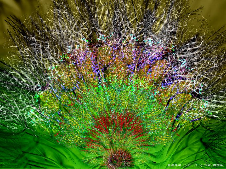 所有美術(shù)作品都是由蛋白質(zhì)序列微觀結(jié)構(gòu)組合而成,通過建立蛋白質(zhì)序列和音樂、繪畫藝術(shù)的高維數(shù)據(jù)集及高維關(guān)系圖譜,運(yùn)用AI深度學(xué)習(xí)技術(shù)識(shí)別蛋白質(zhì)序列與音樂和繪畫作品的關(guān)系,完成音樂和繪畫實(shí)現(xiàn)的算法,開發(fā)音頻和高維視覺藝術(shù)生成系統(tǒng),實(shí)現(xiàn)科學(xué)與藝術(shù)的深度融合,使作品展現(xiàn)聲形并茂、動(dòng)靜結(jié)合、虛實(shí)并蓄的聲光電效果。