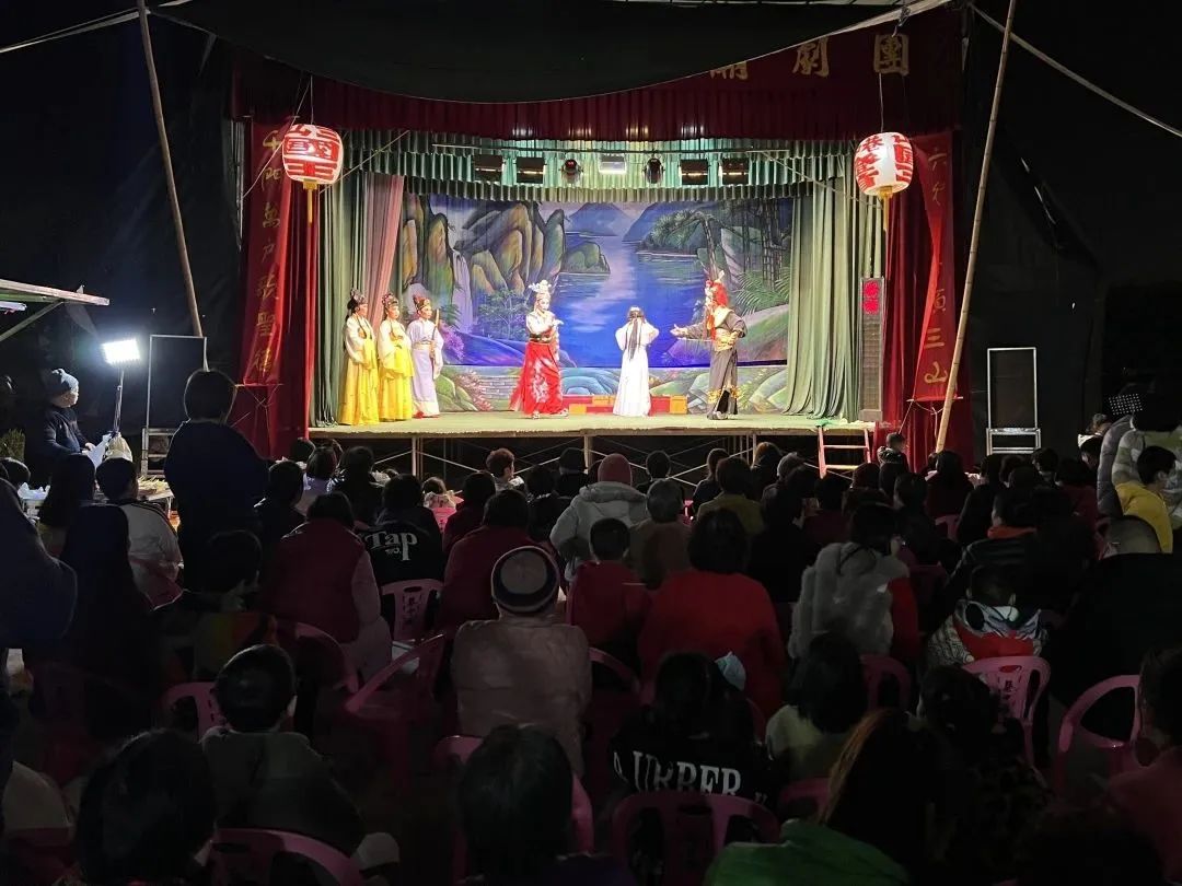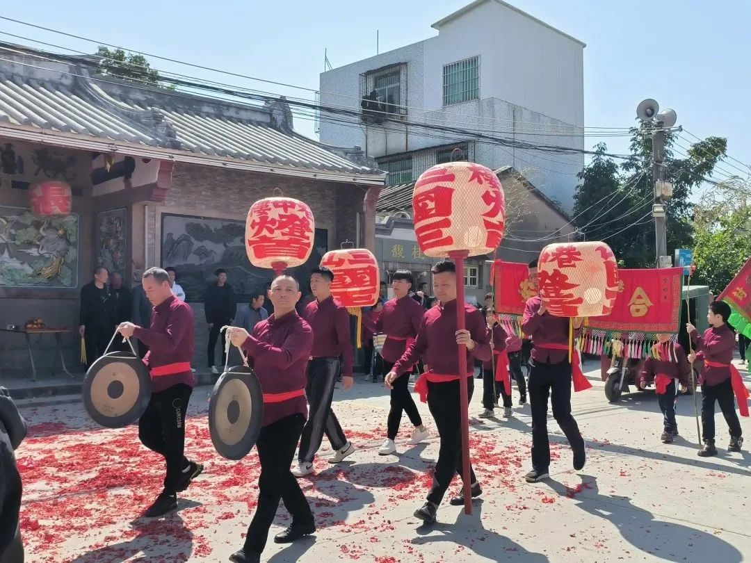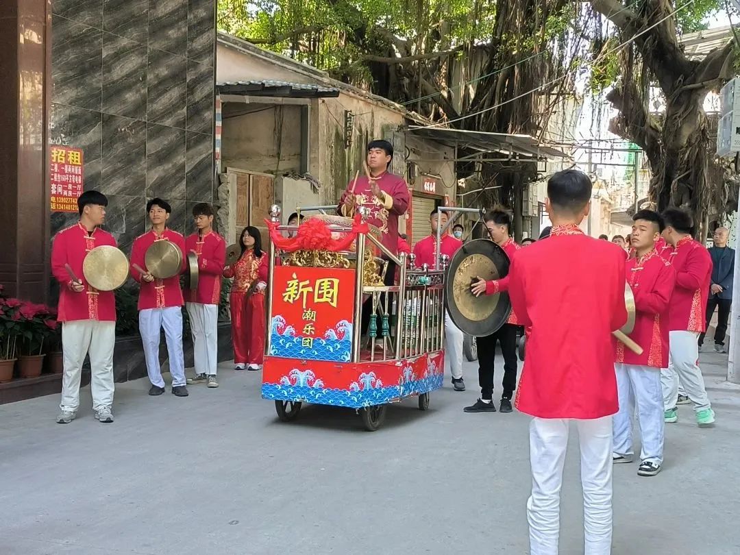 今年的燈首巡游活動按照慣例會由巷中樓舉辦,時間為2月22日至25日(即農(nóng)歷二月初三至初六)。在二月初三下午,隨著“鏘鏘鏘”的鑼響和響徹云霄的鞭炮聲,“燈首”巡鄉(xiāng)活動宣告隆重開始。活動現(xiàn)場,道路兩側(cè)都站滿了圍觀的村民,舞獅隊、鑼鼓隊、花環(huán)隊、彩旗隊等潮汕民俗巡游隊伍前往三山國王廟里迎請“三山國王”神像,隨后,巡游隊伍由村中老人帶隊,抬扛著“三山國王”神像的轎子和其他隊伍巡游整個鄉(xiāng)。在隊伍中穿著紅色衣裳的鑼鼓隊成員敲打出激昂的鼓樂聲,舞獅隨之歡騰起舞,惟妙惟肖的姿態(tài)展示出了醒獅各種情緒神態(tài),巡游隊伍所到之處人潮涌動,舞獅跳躍,熱鬧喧天,把鄉(xiāng)村“鬧”得熱火朝天。隊伍巡游結(jié)束后將“三山國王”神像請入祠堂,現(xiàn)場高搭彩門和彩棚,擺放著每家每戶自己制作的精美粿品、“豬頭五生”與雞鴨魚等等物品開展祈福儀式,男女老少個個喜笑顏開,祈求國泰民安。另外,初三晚至初五晚均在簡祖祠前空地有專業(yè)人員開展啞戲表演。比過春節(jié)還要熱鬧的“燈首”不僅是鷗汀居民群眾祈求平安的喜慶節(jié)日,更是一次潮汕獨特民間文藝活動的大展示,寄予著共慶盛世、娛樂升平、物阜民康的美好生活愿望。