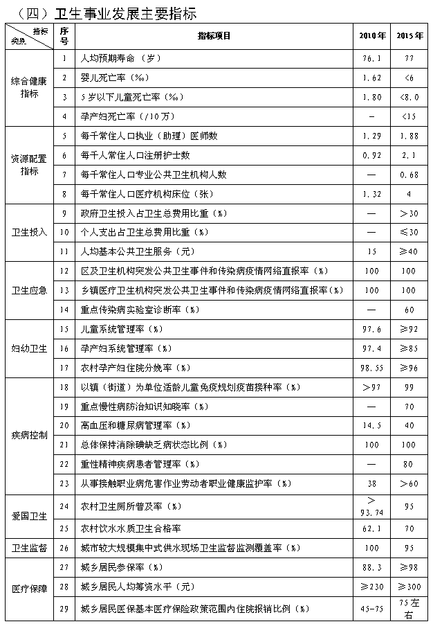 三、“十二五”衛生事業發展規劃目標